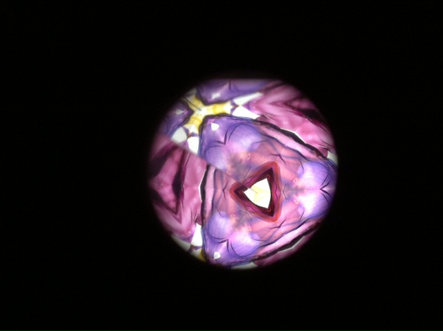 Estructuras caleidoscópicas abstractas de colores resplandecientes se reflejan y se funden en un iris circular, filmadas en super 8. Las imágenes fueron preparadas pintando directamente sobre película de 35mm fotograma a fotograma. Estos fotogramas se copiaron ópticamente y el material resultante se reveló artesanalmente y se manipuló. Estas imágenes fueron luego transpuestas a láminas de acetato antes de ser reanimadas en super 8 usando sus reflejos sobre un cristal. Música original de Rick Hyslop. (M.H.) - 7200 FRAMES UNDER THE SUN